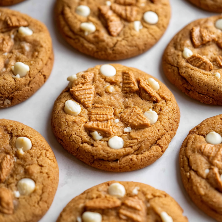 The texture is absolutely perfect—crispy edges give way to soft, chewy centers loaded with melty white chocolate and crunchy Biscoff pieces. Each bite offers multiple textures and flavors, making these cookies far more interesting than your standard chocolate chip variety.
