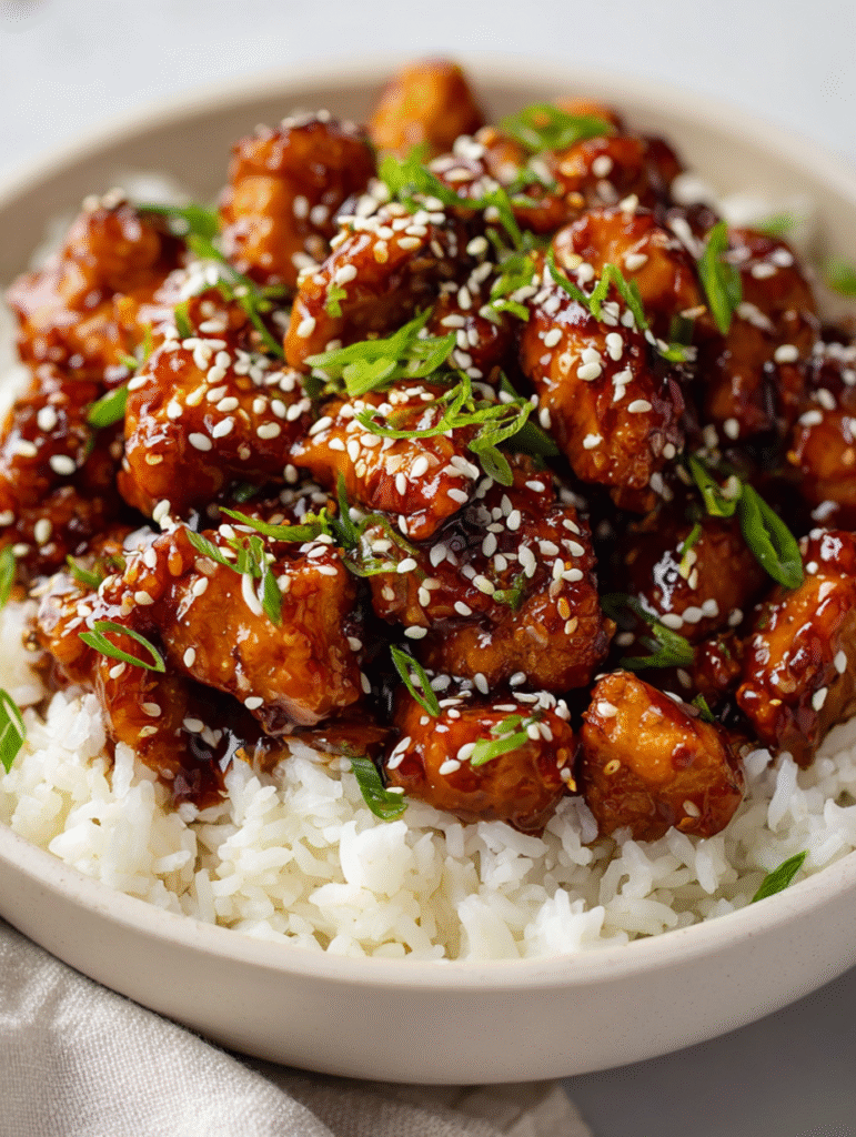Imagine a bowl of steaming rice gently soaked in a fragrant garlic-ginger broth, topped with glossy pieces of chicken glazed in caramelized soy, and garnished with sesame seeds and scallions. Each bite brings soft, umami-rich meat, silky broth that whispers of ginger and garlic, and the comforting warmth of rice absorbing it all. This dish beautifully balances savory, sweet, and aromatic flavors for a bowl that’s elegant, satisfying, and full of heart. Perfect for cozy dinners, weeknight meals, or anytime you want a bowl that feels like both comfort food and a little indulgence.