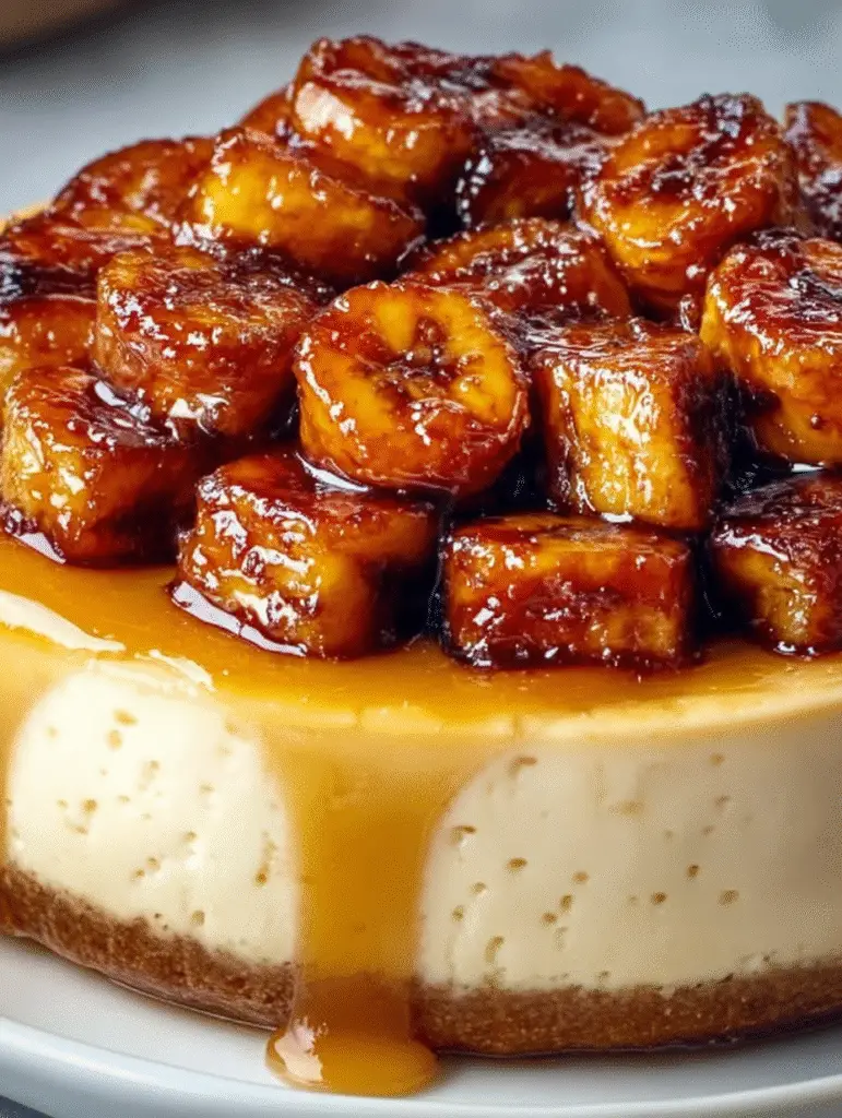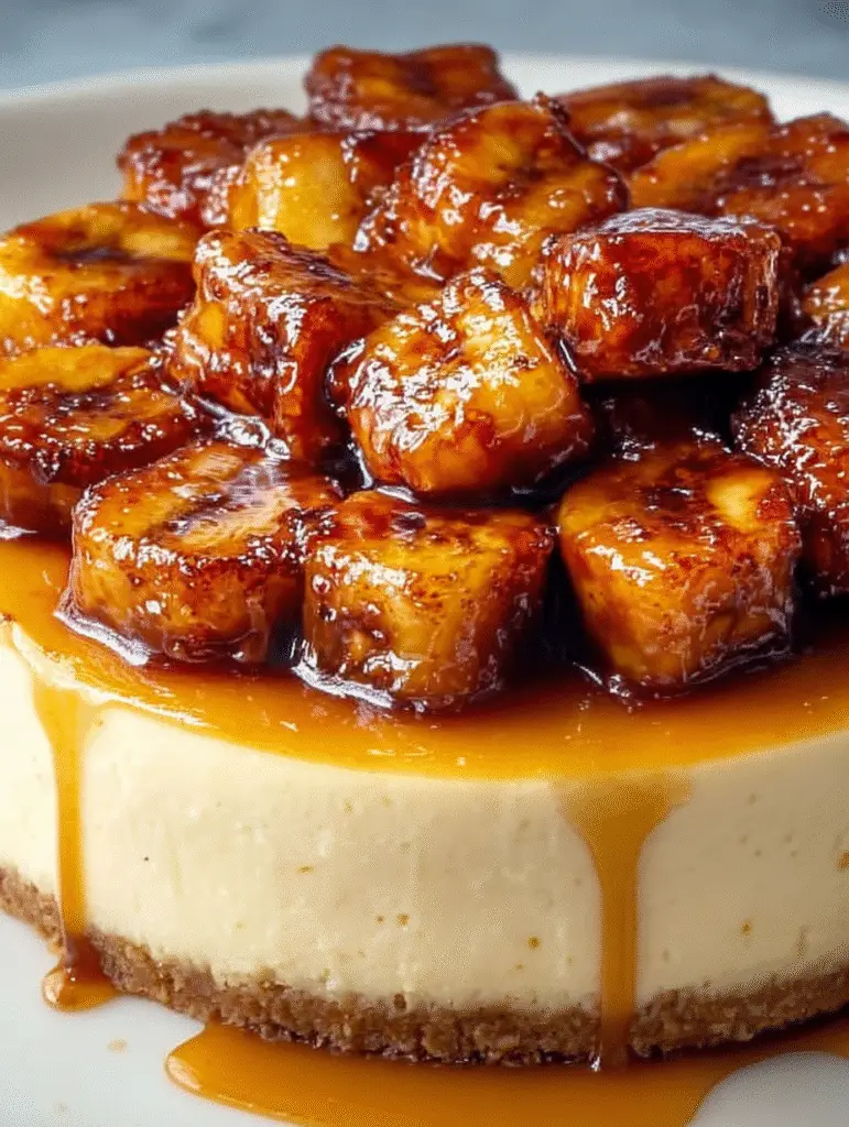 This cheesecake is stunning on its own, but a few accompaniments can take it to the next level. A dollop of freshly whipped cream adds lightness and cuts through the richness beautifully. For extra indulgence, try serving it with a scoop of vanilla bean ice cream—the cold ice cream melting into the warm bananas is pure heaven.