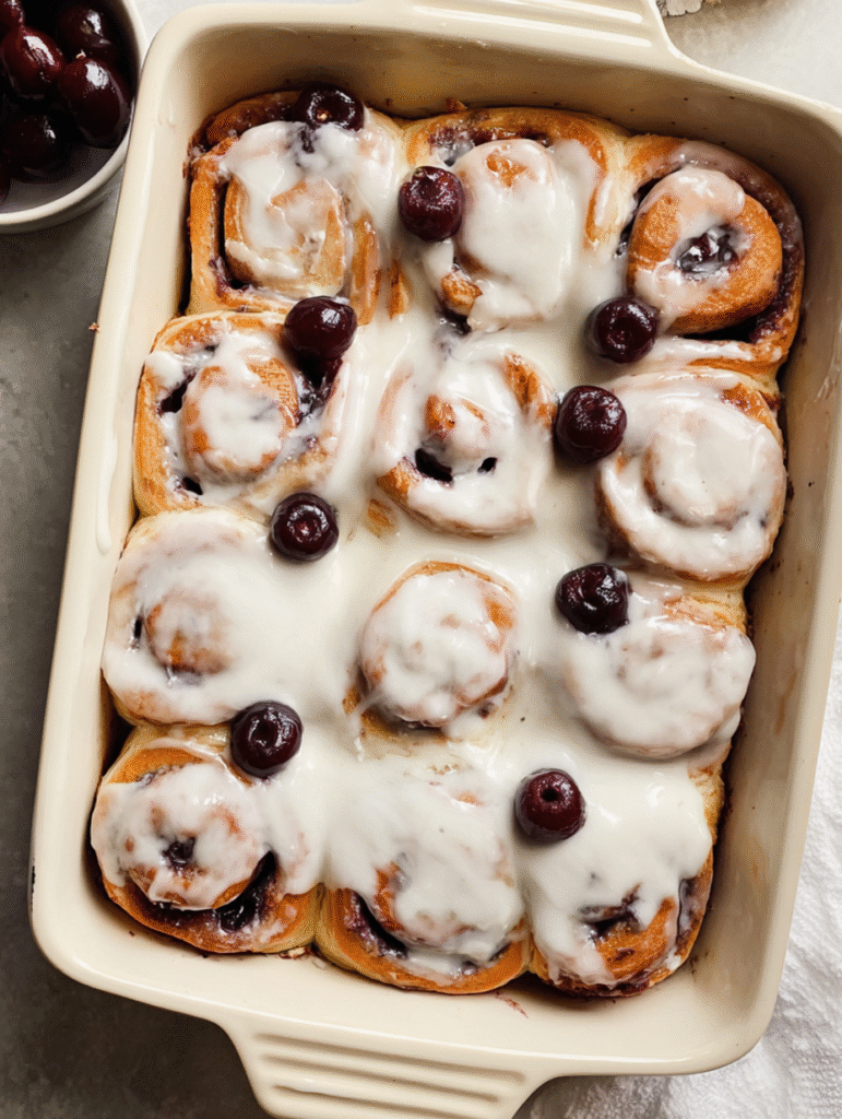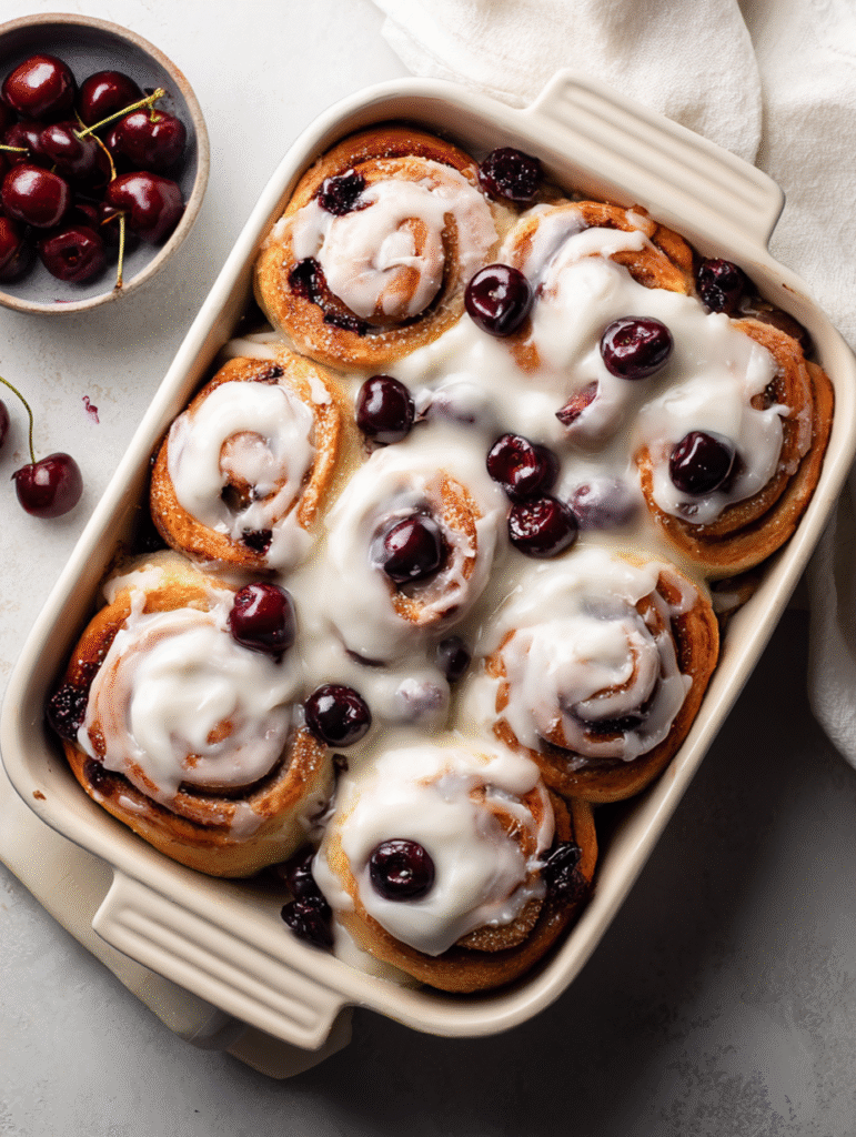 With its lush cherry filling, tender buttery dough and silky icing, these Cherry Cinnamon Rolls bring warm, fruity indulgence to your table — the perfect treat for sweet moments that deserve something a little special.