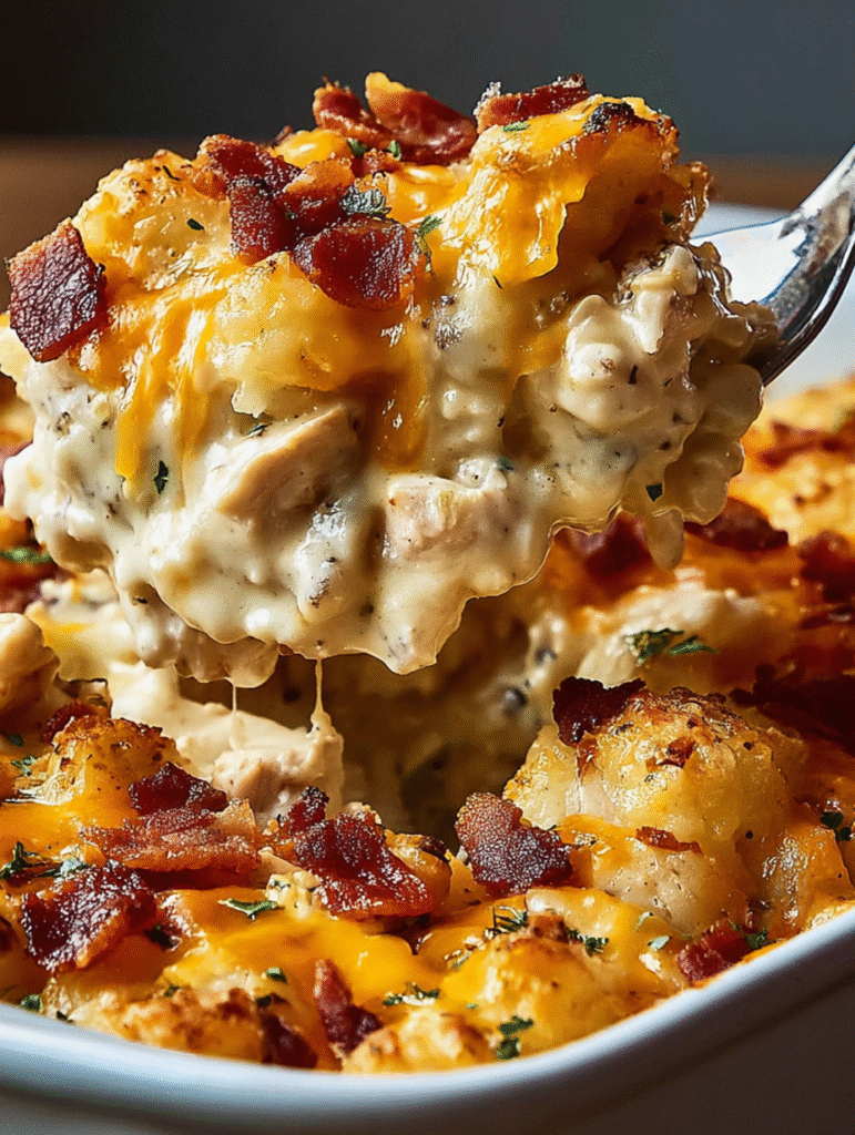 There’s something magical that happens when you combine crispy bacon, tender chicken, and golden tater tots in one incredible dish. Growing up, my grandmother always said that the best meals were the ones that brought the whole family running to the kitchen before you even called them to dinner. This Chicken Bacon Crunch Casserole does exactly that – it’s the kind of recipe that fills your home with irresistible aromas and creates those precious family moments around the dinner table.