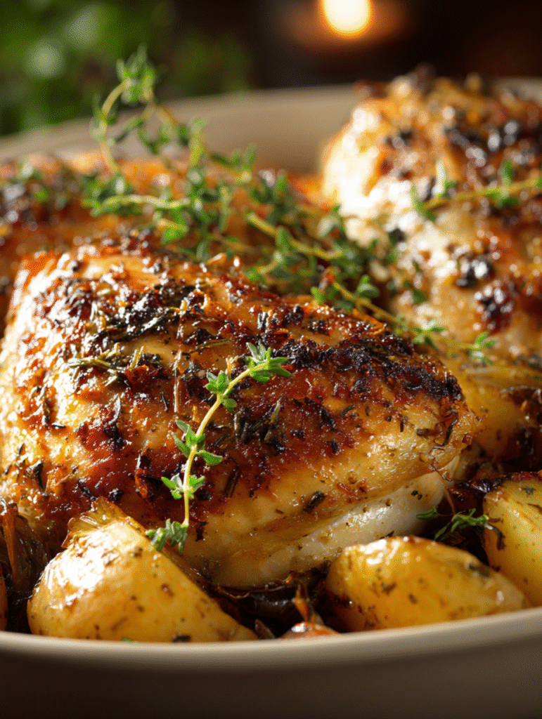 This dish represents the beautiful simplicity of seasonal cooking, where just a handful of quality ingredients come together to create something truly special. The sweet-tart apples soften into tender, caramelized pieces that complement the savory chicken perfectly, while fresh thyme adds an aromatic note that ties everything together. It’s comfort food at its finest – elegant enough for guests yet simple enough for a Tuesday night.
