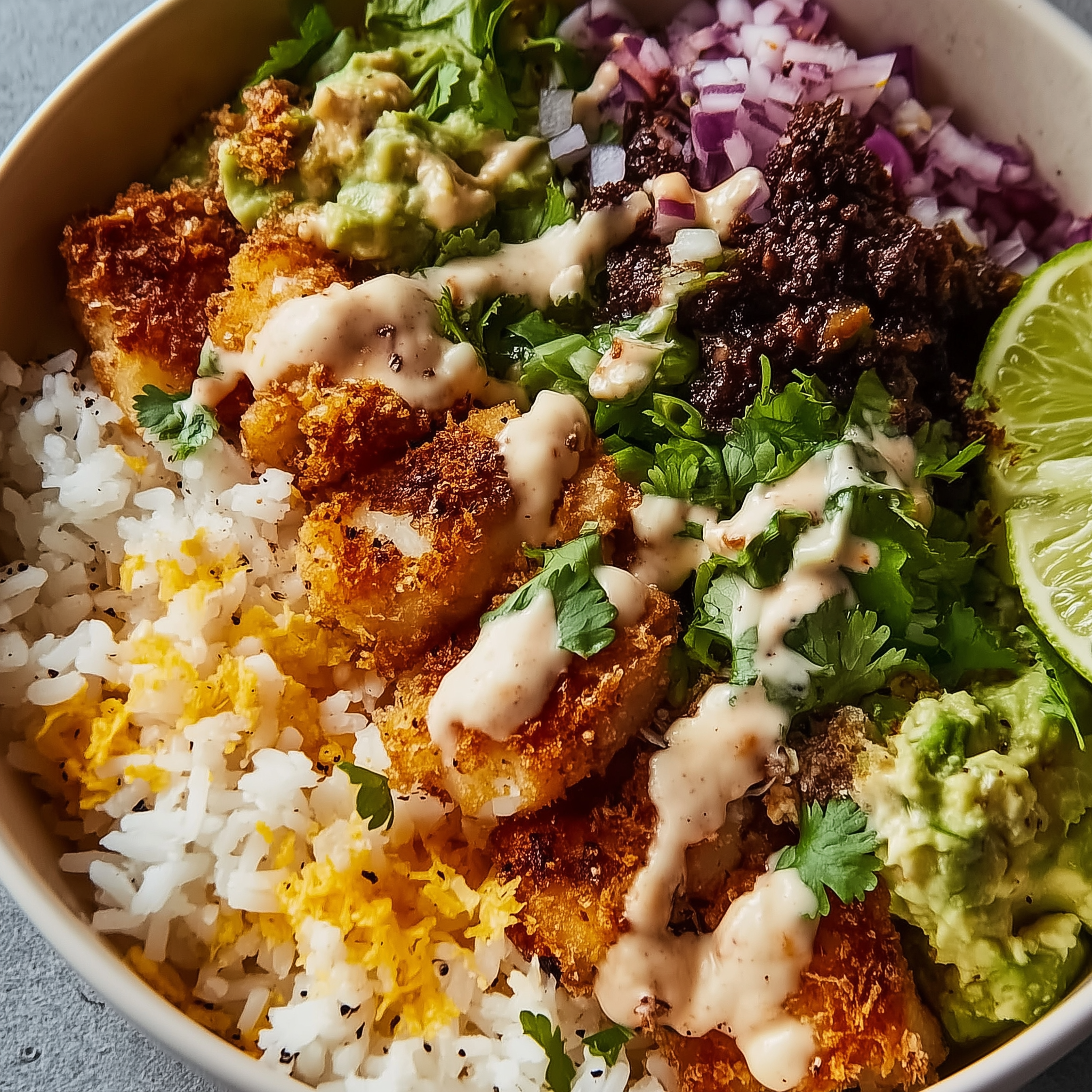 The magic happens when perfectly seasoned crispy fish meets fresh, zesty slaw and creamy chipotle sauce, all nestled over a bed of fluffy rice. Each bite delivers a symphony of textures and flavors that transport you straight to your favorite coastal taco shop – except these are actually better because you control every delicious detail.