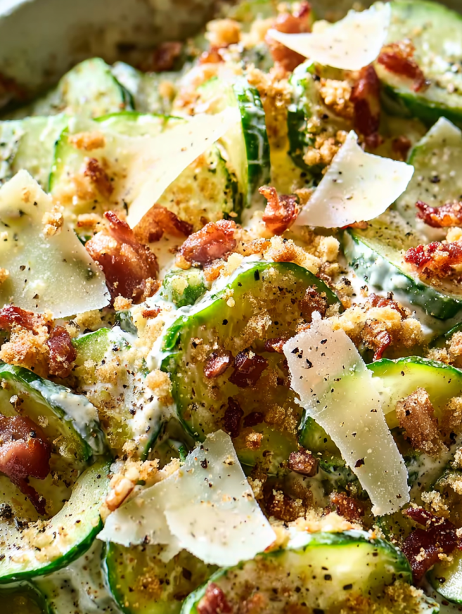 This Cucumber Caesar Salad proves that simple ingredients can create extraordinary results. The combination of cool cucumbers, crispy bacon, nutty Parmesan, and tangy Caesar dressing delivers a flavor experience that’s far greater than the sum of its parts. Whether you’re looking for a quick weeknight side or an impressive dish for entertaining, this recipe delivers every single time.