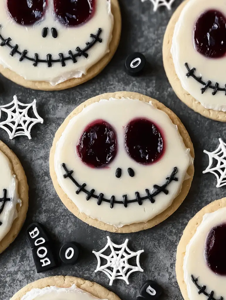 The distinctive cut-out design immediately identifies these as Jack Skellington cookies, making them instantly recognizable to fans of all ages. Additionally, the contrast between the white icing and black details creates that signature skeletal appearance that makes Jack so memorable.