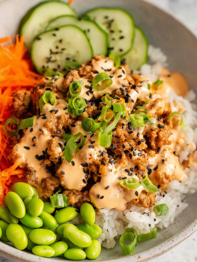 The bang bang sauce keeps beautifully in the refrigerator for up to one week. Make a big batch and use it not just for these bowls but also on sandwiches, as a dip for vegetables, or drizzled over grilled chicken. Having it ready to go means dinner comes together in minutes.