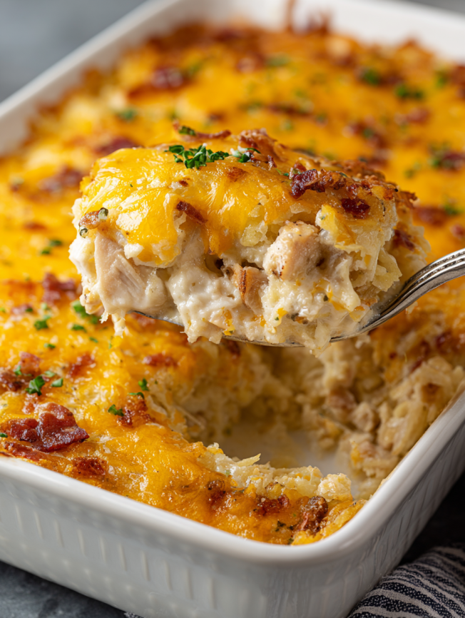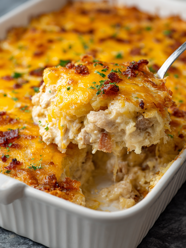 What makes this casserole truly special isn’t just its incredible comfort-food appeal – it’s the way it transforms basic ingredients into something extraordinary. The combination of tender shredded chicken, crispy hashbrowns, and a rich, creamy sauce creates layers of texture and flavor that make every bite memorable. Best of all, it’s forgiving enough for novice cooks yet impressive enough to serve to guests.