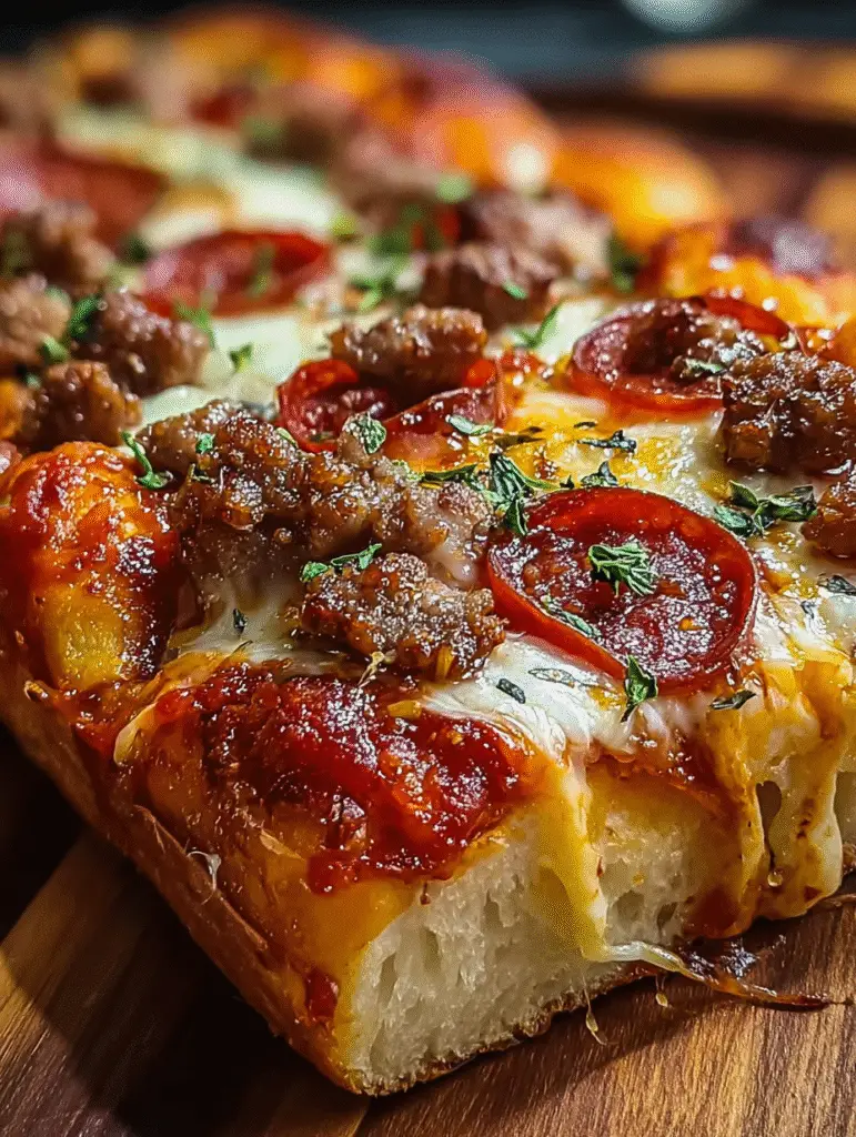 Go all-out with Italian sausage, pepperoni, ham, bell peppers, onions, mushrooms, and black olives for a loaded experience. Use extra mozzarella and add a sprinkle of Parmesan on top before baking.