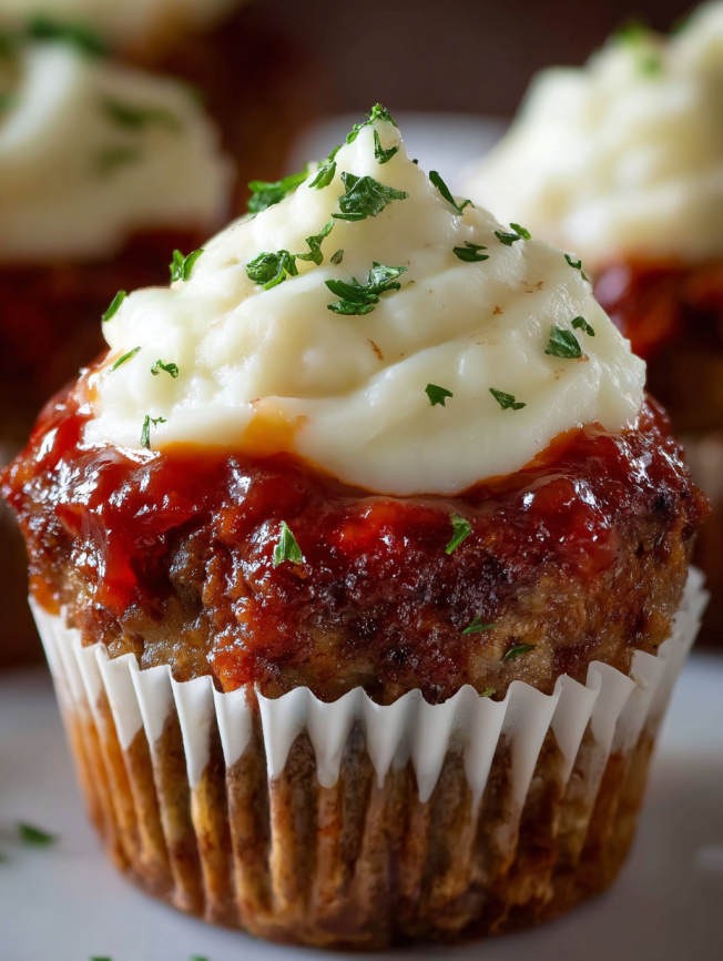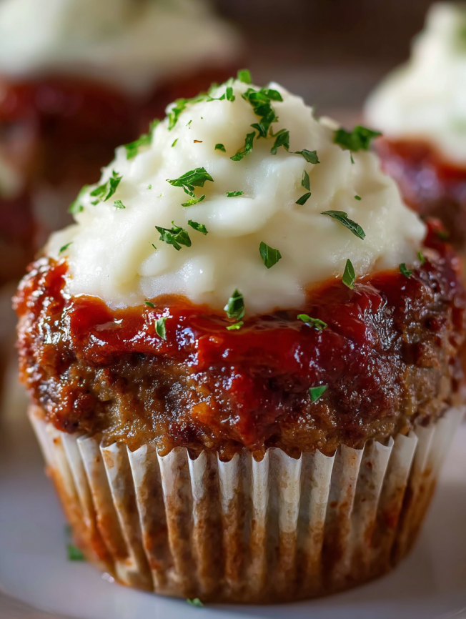 Can I make these ahead of time for a party? Absolutely! These cupcakes are perfect for entertaining. Bake the meatloaf cupcakes up to two days ahead, then add the potato frosting and garnishes just before serving. They can even be served at room temperature if needed.