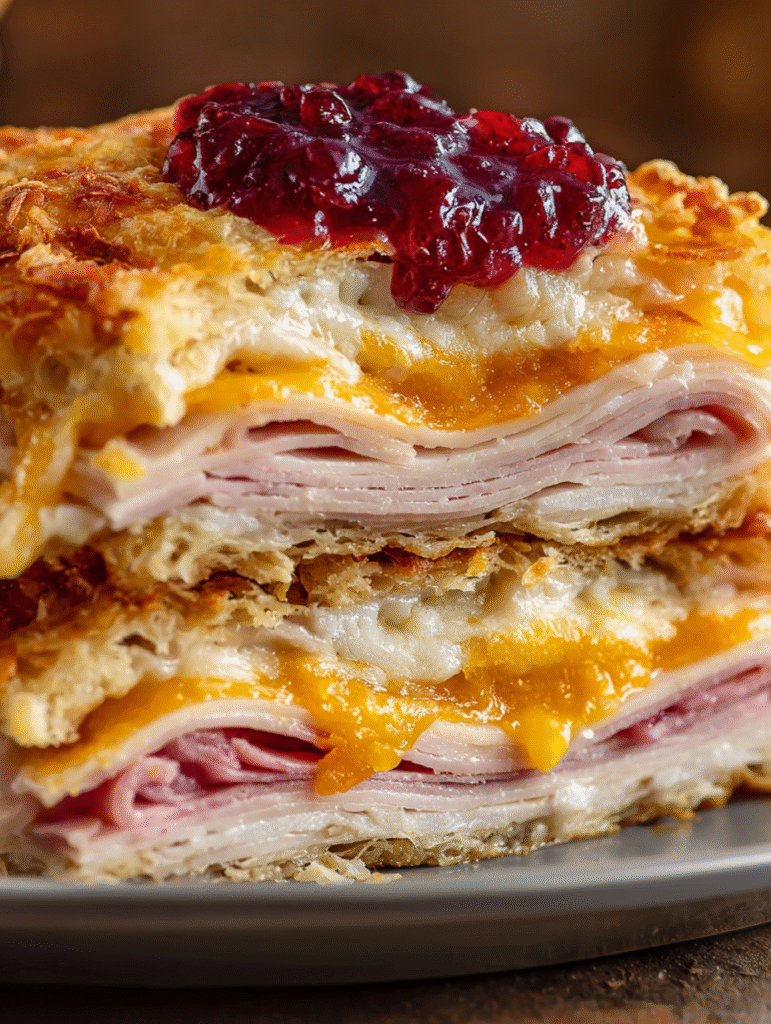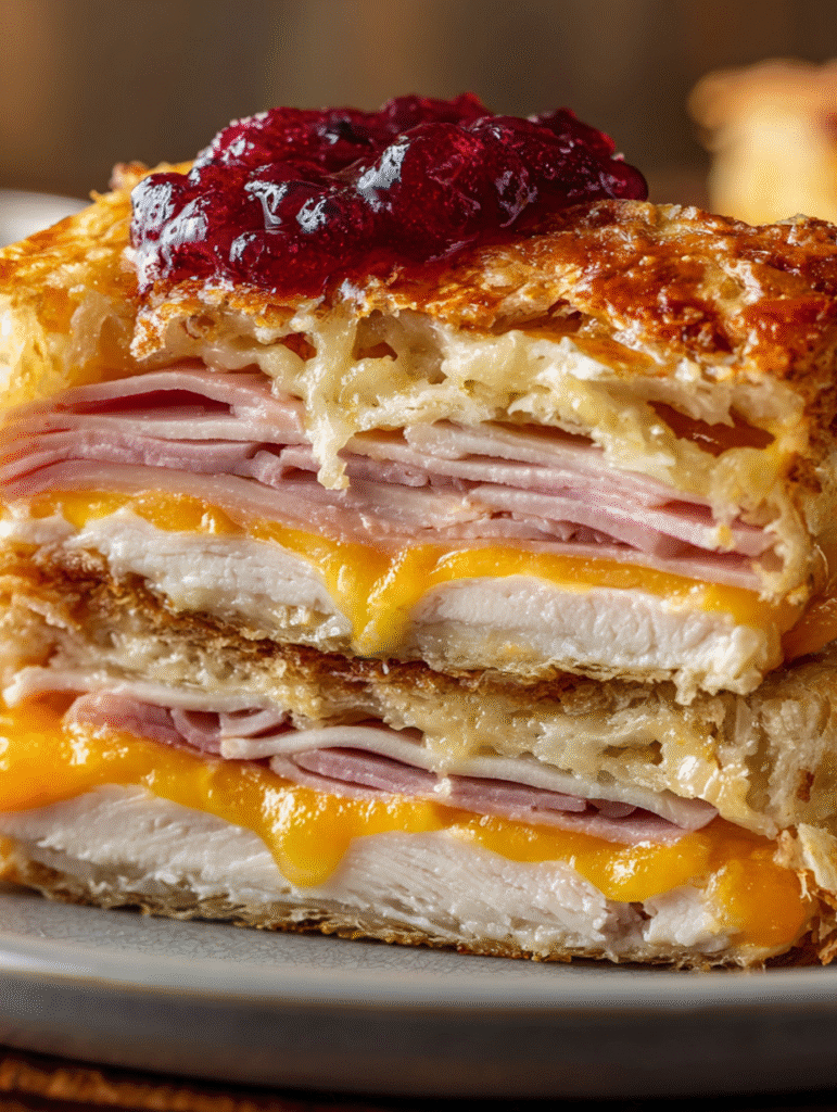 Imagine biting into a decadent golden-crisp sandwich where the sweetness of powdered sugar meets the savory richness of ham, turkey, and melting cheese. This Monte Cristo Sandwich delivers exactly that—a nostalgic café favorite transformed into a show-stopper at home. The batter-dipped bread fries to a perfect crisp, while the layers of meat and cheese create a luscious, hearty middle. Served with raspberry preserves for a fruity contrast and optionally honey-mustard for a tangy twist, it’s indulgence every bite of the way. With its combination of textures—crispy exterior, soft interior, molten cheese—and its blend of savory and sweet, this sandwich is ideal for brunches, weekend dinners, or when you simply want to treat yourself.