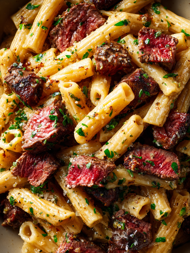 Unlike fussy restaurant pasta dishes that require multiple pots and complex techniques, this recipe keeps things refreshingly simple. The steak cooks in minutes, the pasta boils in the same pan, and suddenly you have a restaurant-quality meal that looks impressive but couldn’t be easier to execute.