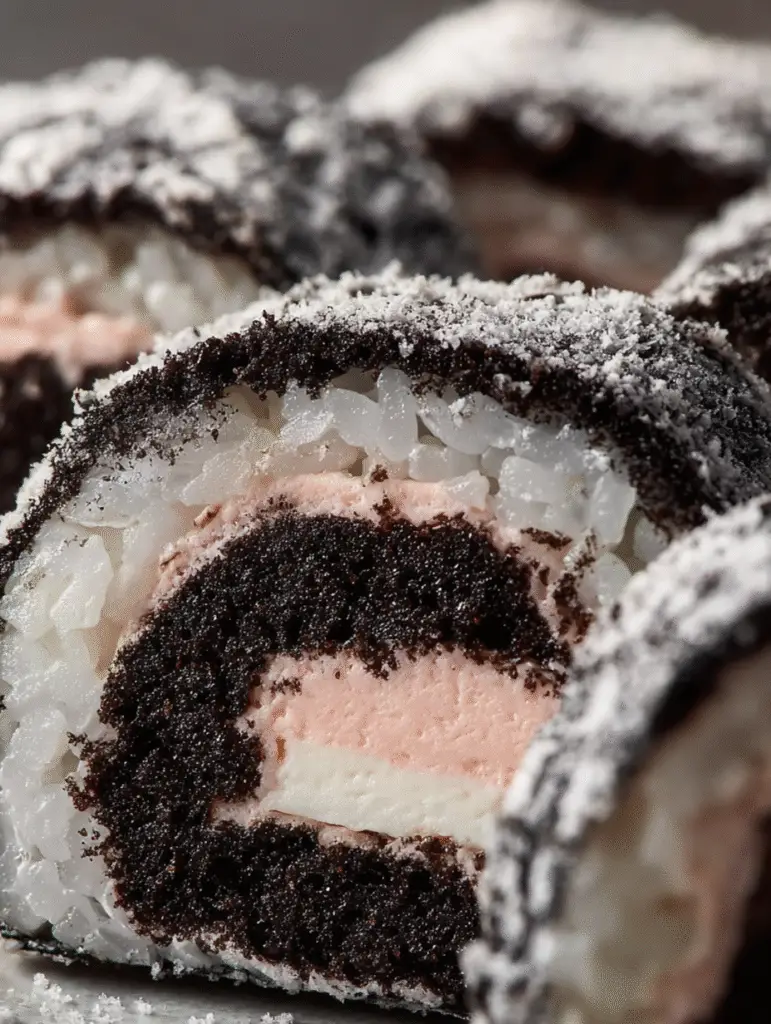 On hot summer days, try freezing your Oreo Sushi rolls for 2-3 hours before serving. The frozen version has a firmer, almost ice cream cake-like texture that’s incredibly refreshing. The contrast between the frozen cookie layer and the slightly softer cream center creates an interesting textural experience that regular Oreo Sushi doesn’t offer.