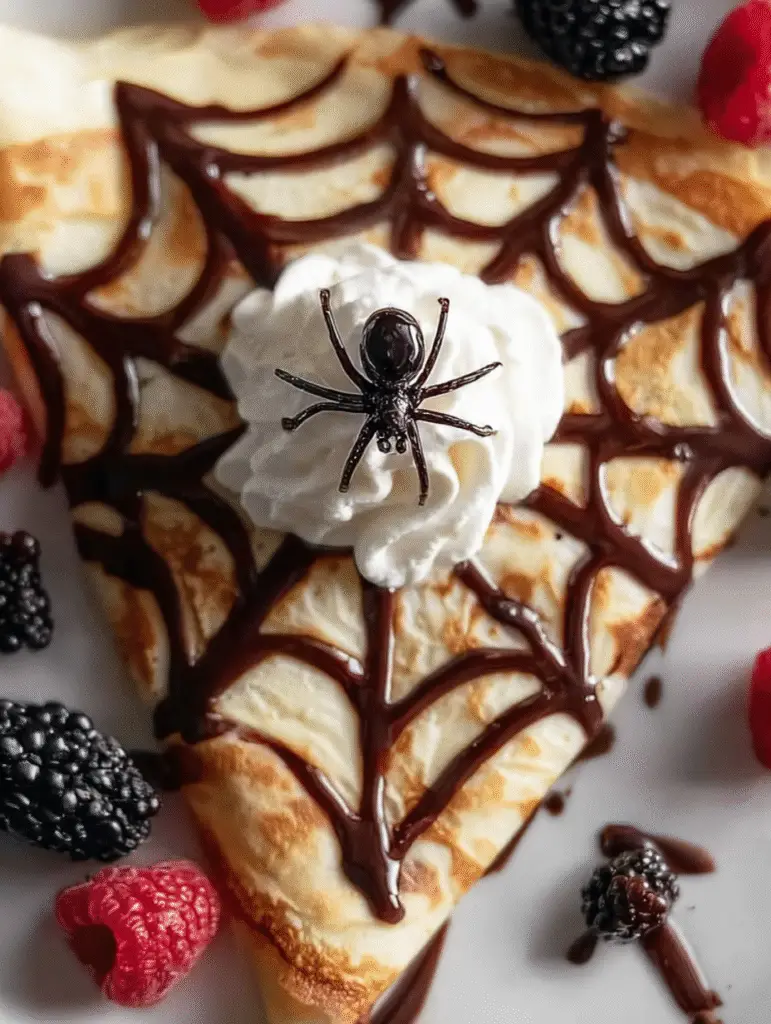 Incorporate 2 tablespoons pumpkin puree and ½ teaspoon pumpkin pie spice into the batter for autumn-flavored crepes. This seasonal variation maintains the elegant spiderweb design while adding classic fall flavors.