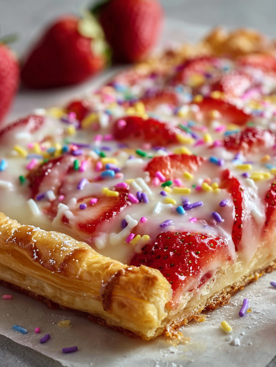 - Presentation tip: Slice into perfect squares, arrange on a marble or wooden board, and scatter a few fresh strawberries and extra sprinkles around for colour.