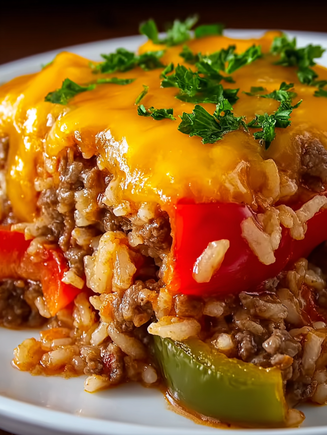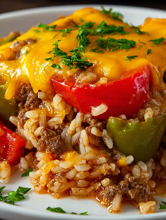 Growing up, my grandmother’s stuffed peppers were a Sunday staple that filled our kitchen with the most incredible aromas. However, as much as I loved them, the thought of hollowing out individual peppers and carefully stuffing each one always felt overwhelming for my busy weeknight schedule. That’s when I discovered this game-changing casserole version that captures every single flavor I remember from childhood, but transforms it into a simple one-skillet meal that’s ready in under an hour.