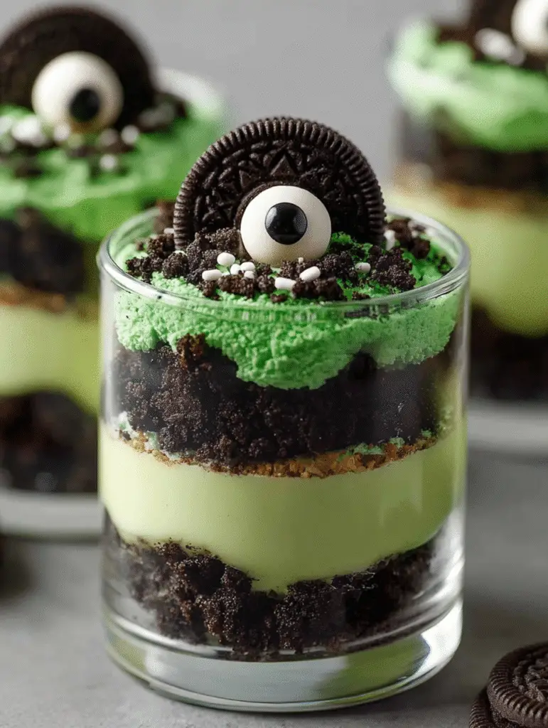 You can prepare these up to 24 hours ahead, which is actually ideal for flavor development. However, don’t add the zombie cookie decorations until just before serving—otherwise, they’ll topple over or become too soft. The pudding mixture can even be made 2-3 days ahead and stored separately from the cookie crumbs, then layered the day before your event.