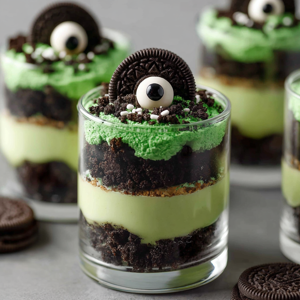 You can prepare these up to 24 hours ahead, which is actually ideal for flavor development. However, don’t add the zombie cookie decorations until just before serving—otherwise, they’ll topple over or become too soft. The pudding mixture can even be made 2-3 days ahead and stored separately from the cookie crumbs, then layered the day before your event.